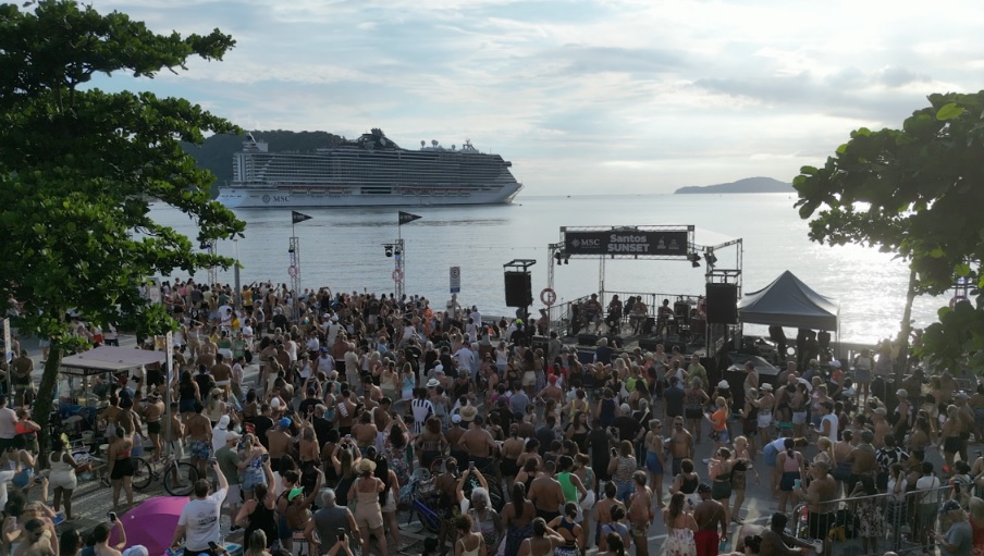 O fim de tarde neste sábado (17) foi de música, encontros e céu colorido na na Ponta da Praia, na orla de Santos. A terceira