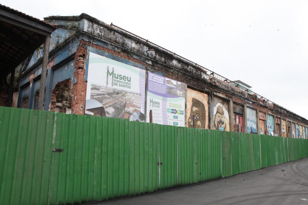 O Armazém de Bagagens e Antigo Pátio Ferroviário de Santos e da São Paulo Railway Co., no Largo Marquês de Monte Alegre, cais do Valongo,