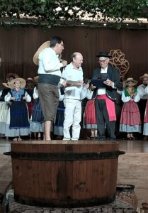 O ponto alto do espetáculo, entretanto, foi a representação da colheita e pisa de uvas que encantou o público, que pôde presenciar e também participar, por meio de danças e degustação do farnel, com pães e vinho, desta antiga tradição de Portugal.