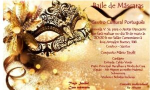 O próximo evento a ser organizado pelo Centro Cultural Português de santos é o Baile de Máscaras, a ser realizado no dia 16 de maio, no Salão Camoniano, com a organização do GAP (Grupo de Apoio ao Presidente).
