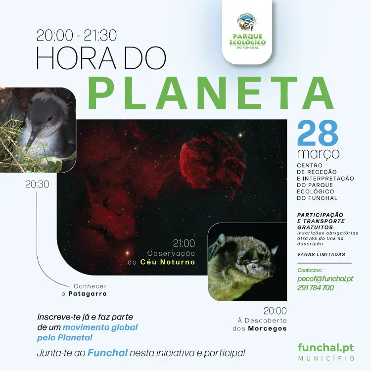 Paralelamente, será promovido um conjunto de atividades temáticas, no Parque Ecológico do Funchal, dirigidas à comunidade, com o intuito de fomentar a consciencialização ambiental, para que esta hora seja também uma forma de descobrir mais sobre a preservação da biodiversidade e do nosso património verde e natural.