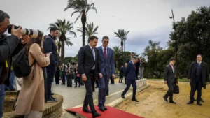 O primeiro-ministro espanhol, Pedro Sánchez, recebeu o homólogo português, Luís Montenegro, nesta sexta-feira (6) na esplanada do IV Centenário, junto ao Mosteiro de Santa Maria de La Rábida e da Universidade Internacional da Andaluzia, em