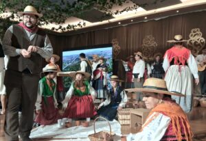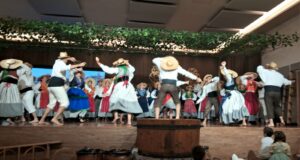 O ponto alto do espetáculo, entretanto, foi a representação da colheita e pisa de uvas que encantou o público, que pôde presenciar e também participar, por meio de danças e degustação do farnel, com pães e vinho, desta antiga tradição de Portugal.