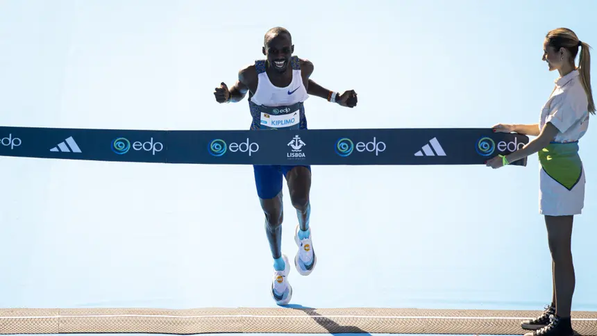 Kiplimo, de 25 anos, já tinha batido em 2021 o recorde do mundo na prova lisboeta, em 57.31 minutos, mas o etíope Yomif Kejelcha tinha tirado um segundo a essa marca em 2024, na cidade espanhola de Valência, que foi agora batida mais uma vez.